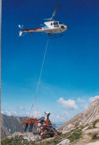 Oftmals müssen Erdbewegungsarbeiten in nahezu unwegsamen Gelände durchgeführt werden. Meistens besteht die Möglichkeit die Baustelle mit dem Schreitbagger wenn auch mit großem Aufwand zu erreichen. Manchmal besteht jedoch die einzige Möglichkeit darin, den Schreitbagger zu zerlegen und mit dem Hubschrauber an den Einsatzort zu fliegen.